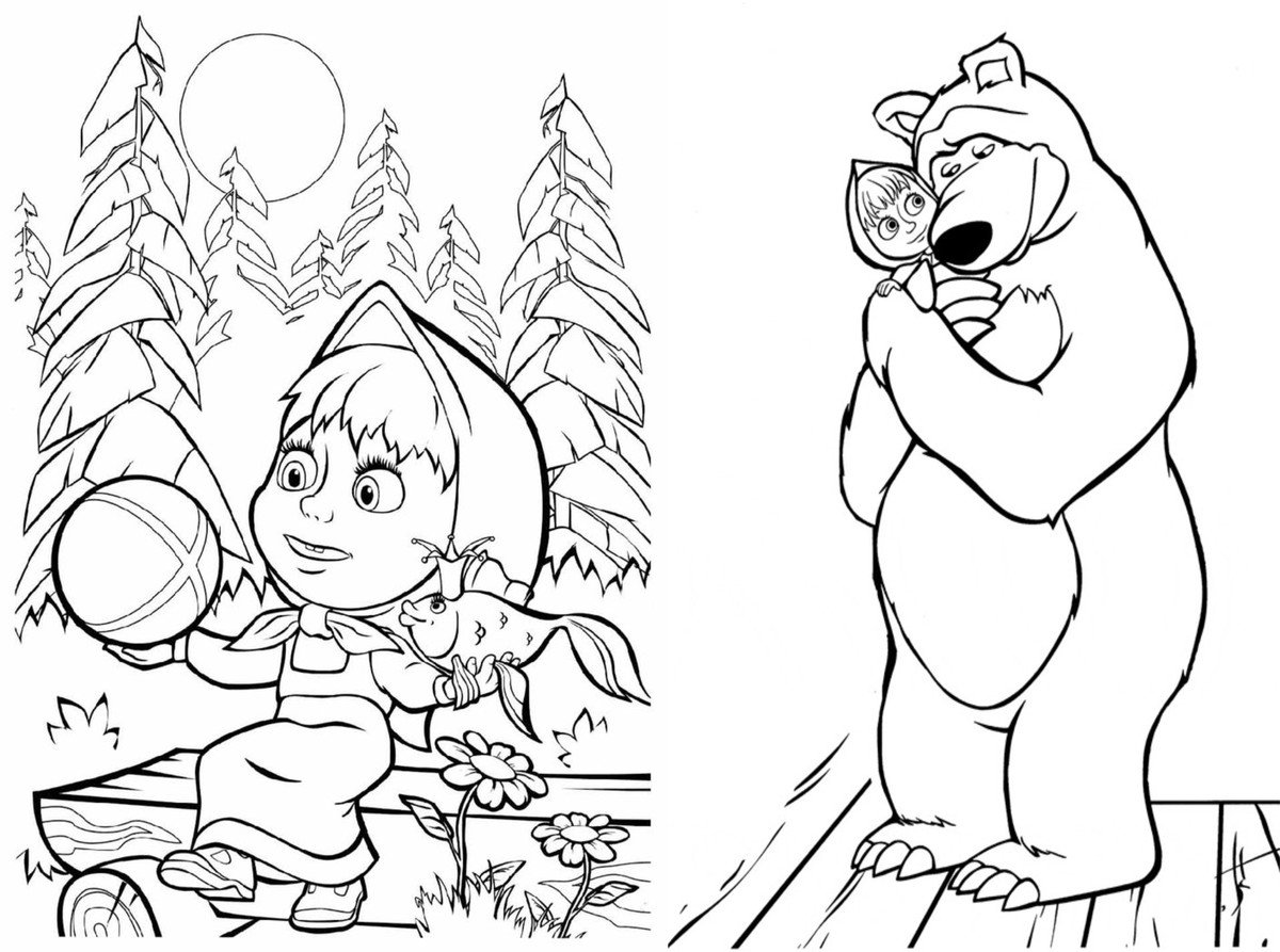 Маша и медведь рисунки для раскрашивания