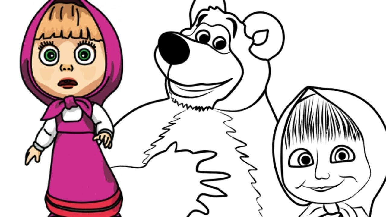 Рисунки разукрашки Маша и медведь