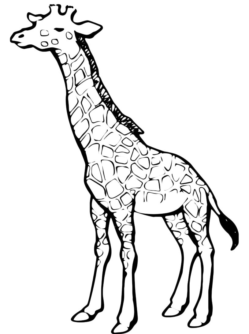 Жираф для печати черно белый