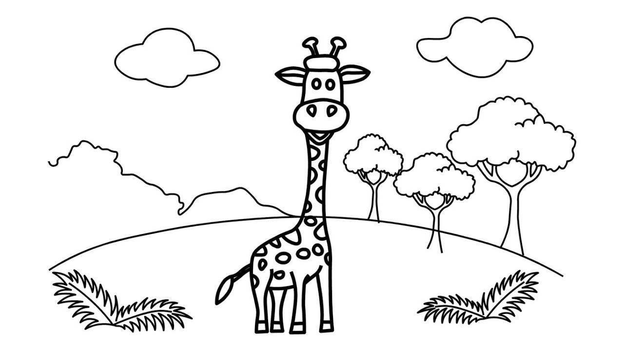 ![Жираф чб для детей]()