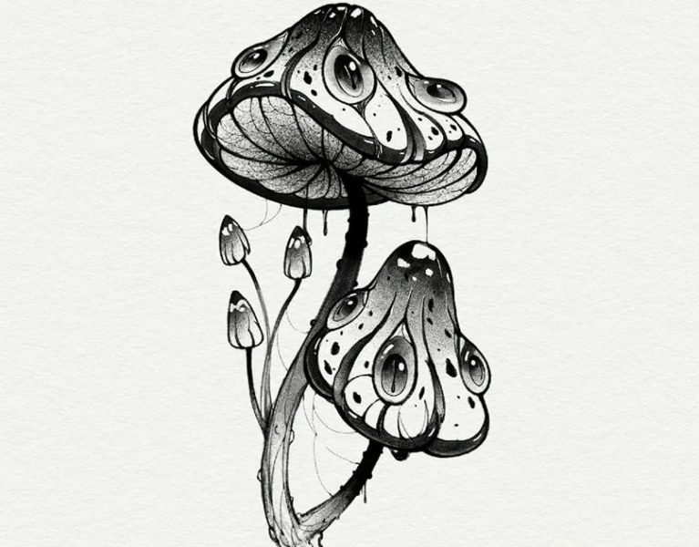 Грибы тату эскиз