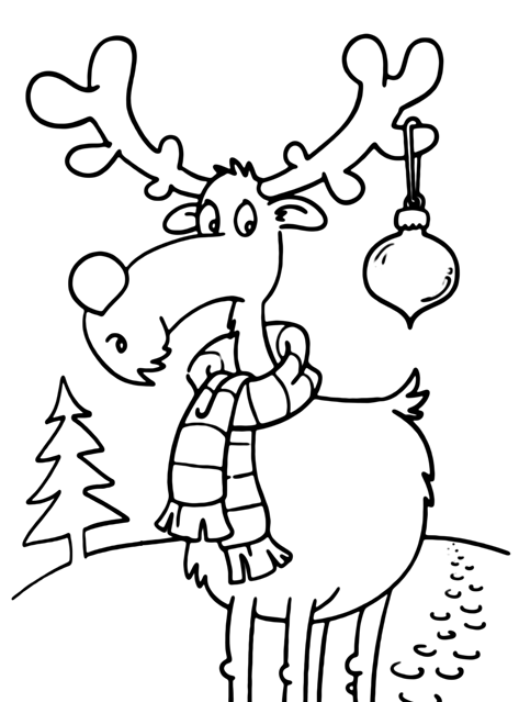 ![Рождественский олень раскраска]()