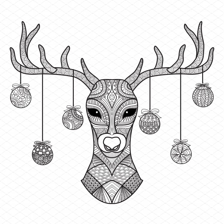 ![Раскраска олень новогодний голова]()