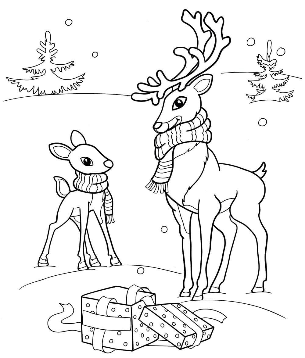 Новогодние раскраски милые олени