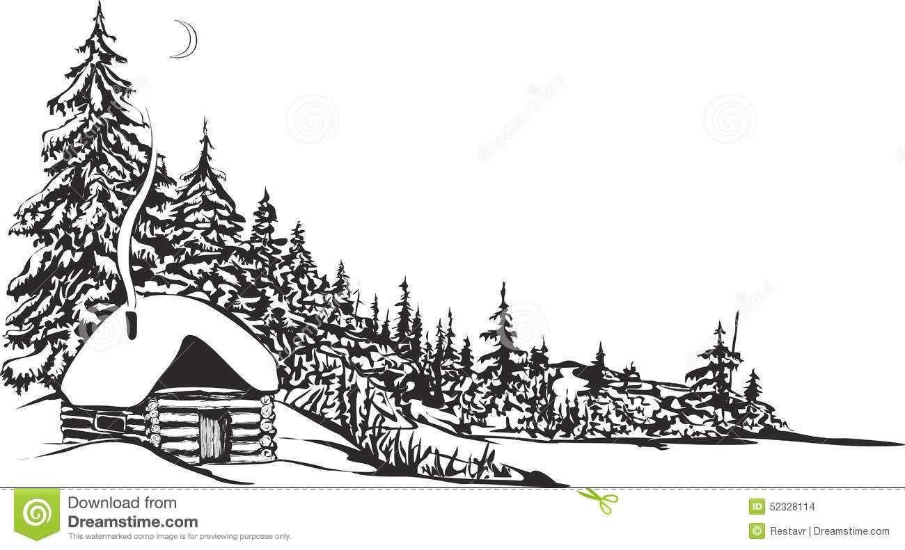 ![Нарисовать домик в тайге]()