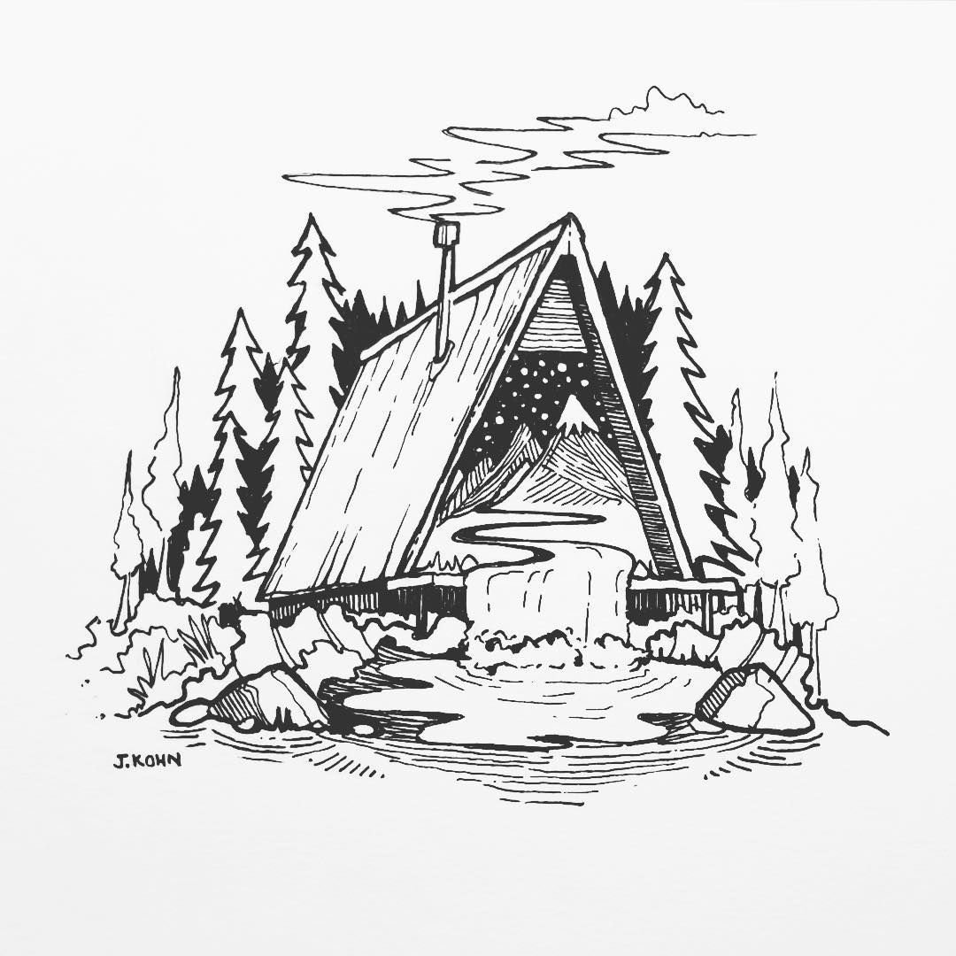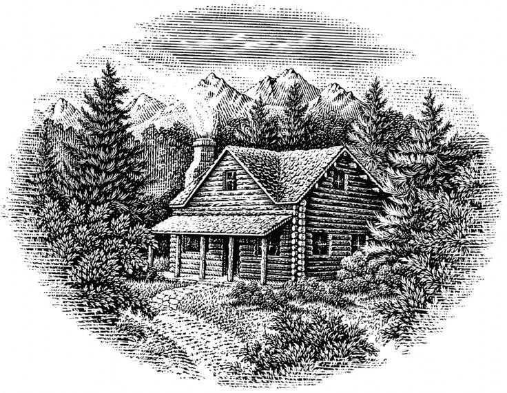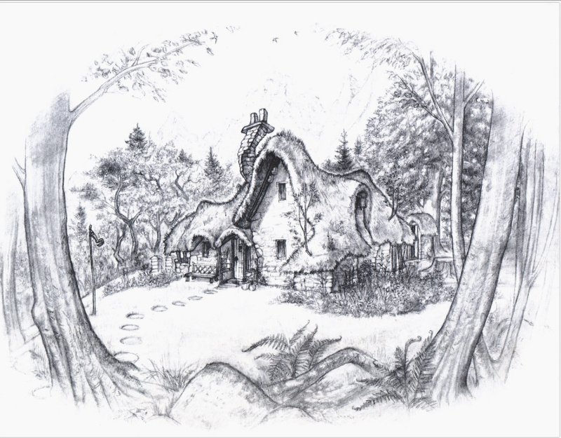 ![Домик в лесу набросок]()