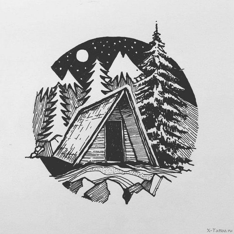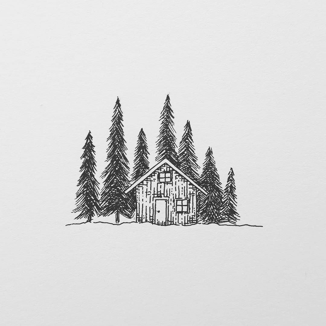 ![Скетч домик в лесу]()