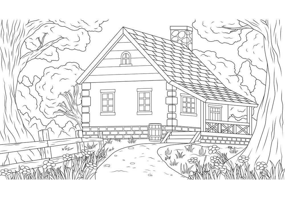 Раскраска домик в лесу
