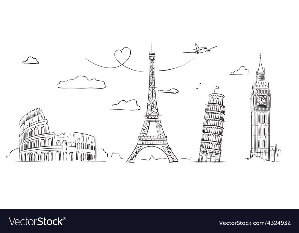 ![Биг Бен Эйфелева башня и Пизанская башня]()
