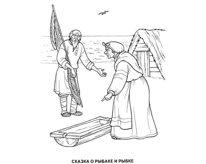 Раскраски по сказке Пушкина о рыбаке и рыбке