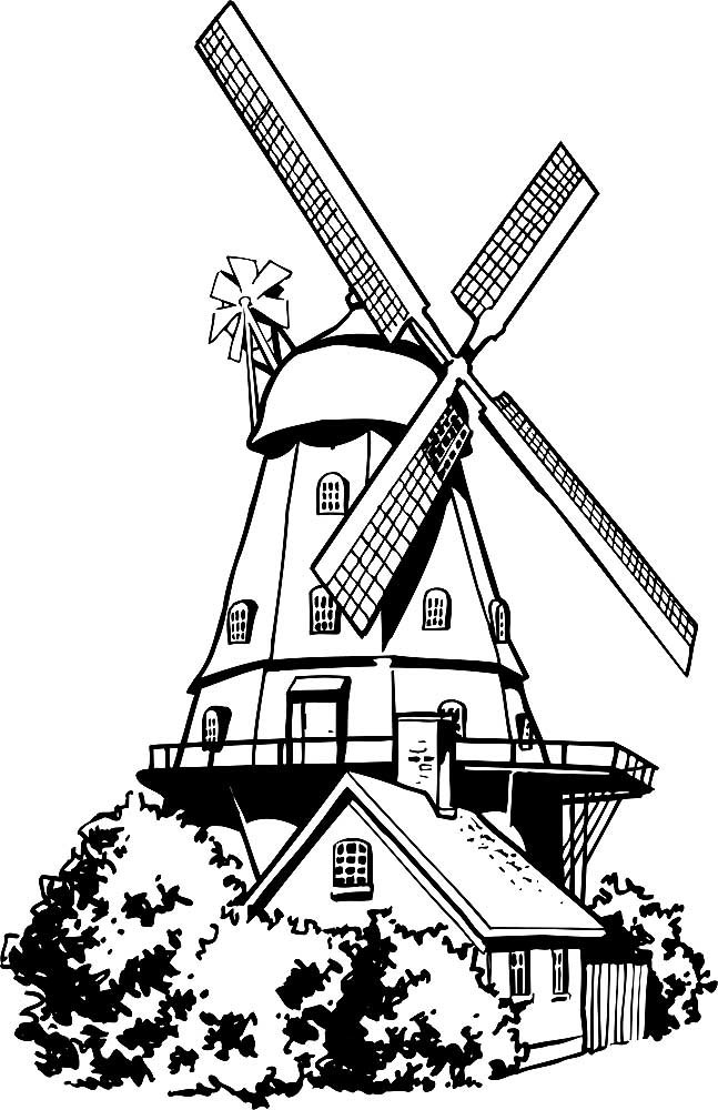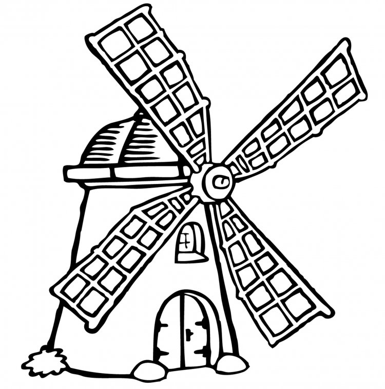 Мельница контурный рисунок