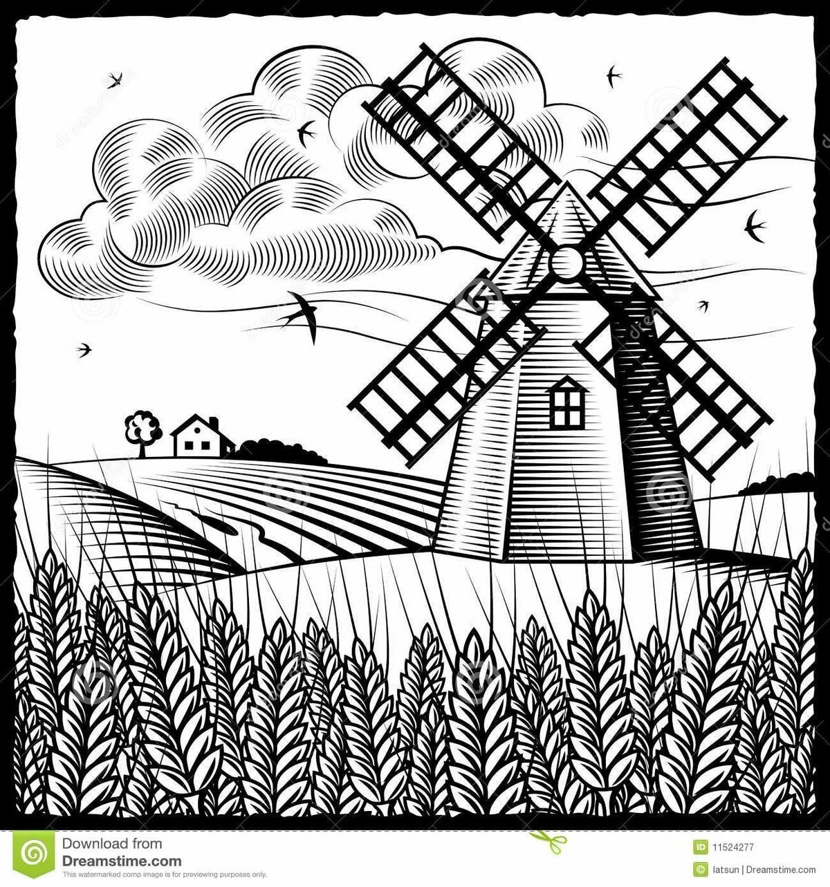 ![Мельница черно белая]()