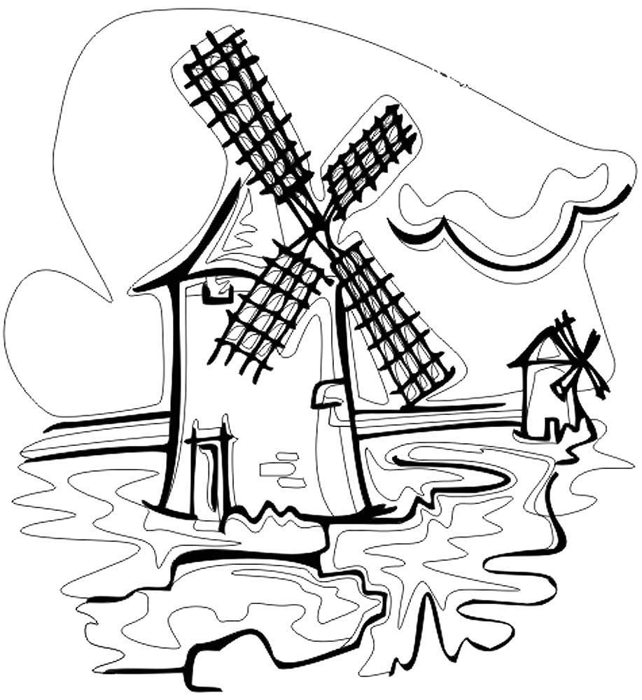 Мельница раскраска