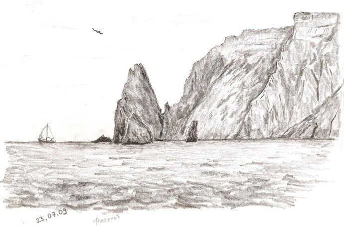 ![Геленджик карандаш эскиз скала Парус]()