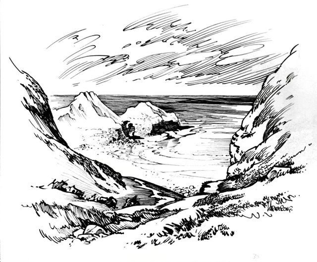 ![Морской пейзаж тушью]()