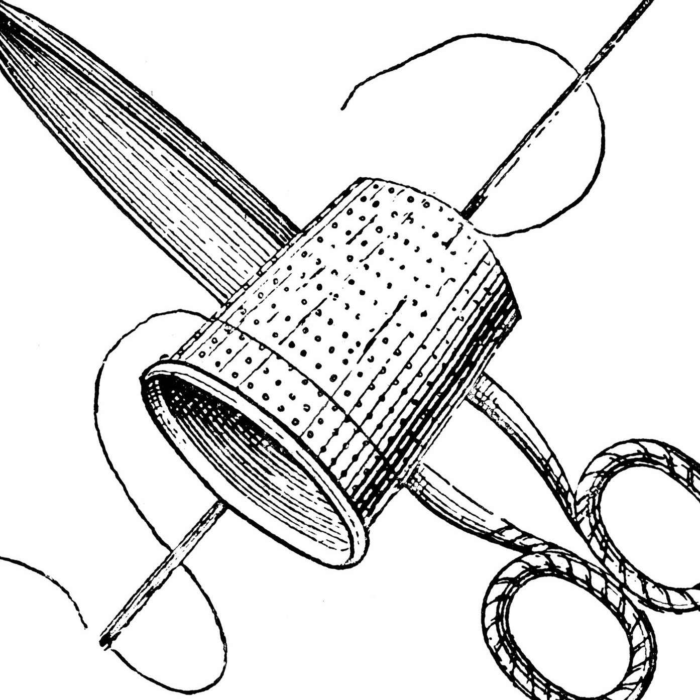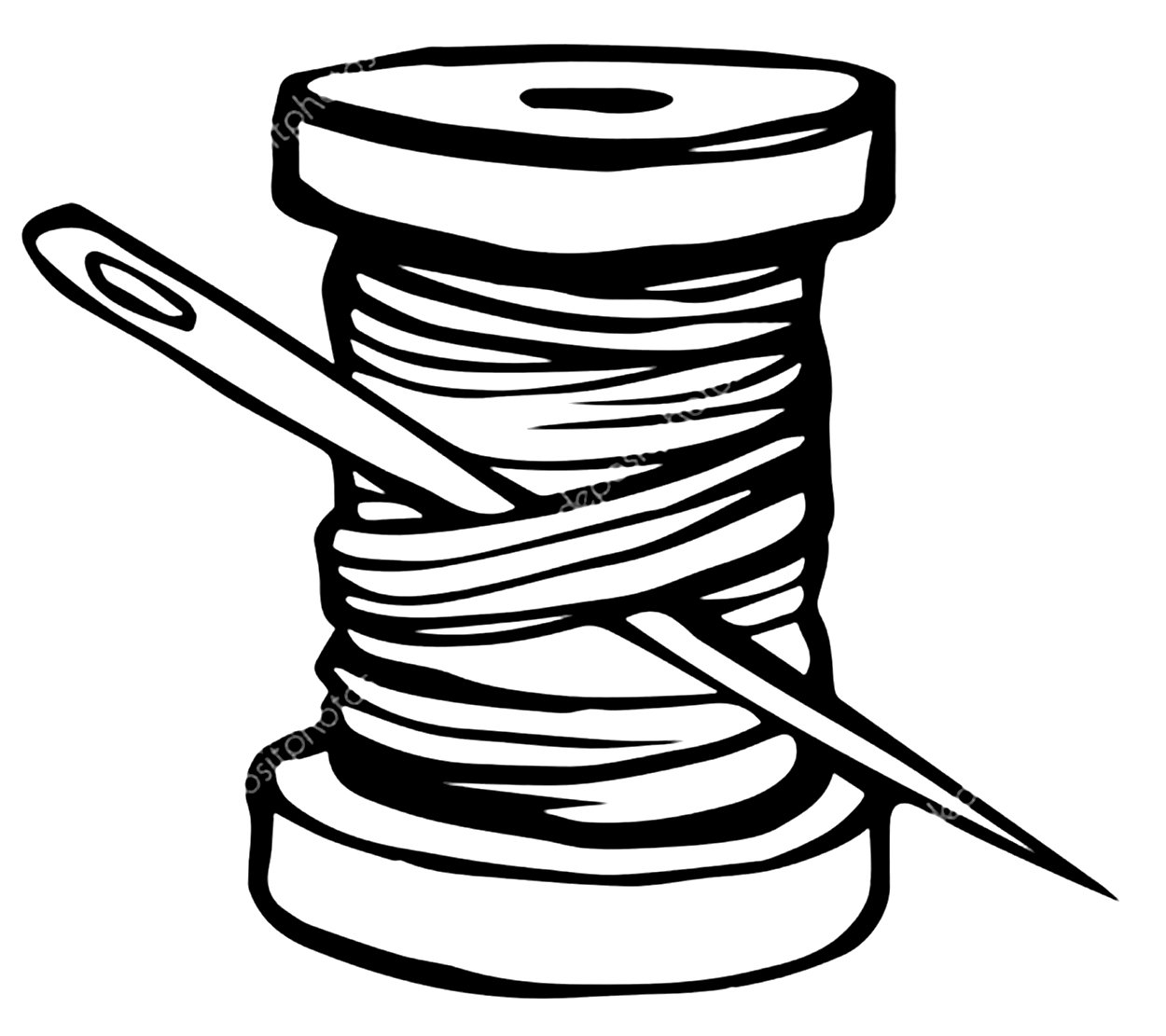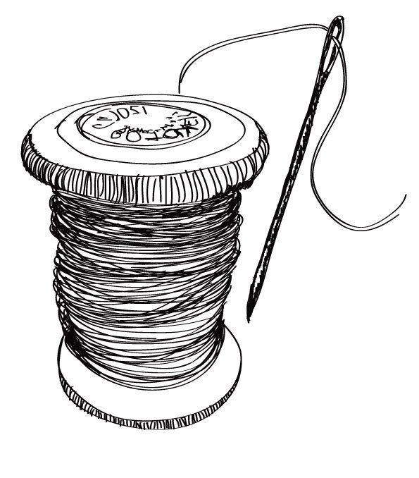 ![Иголка с ниткой черно белая]()
