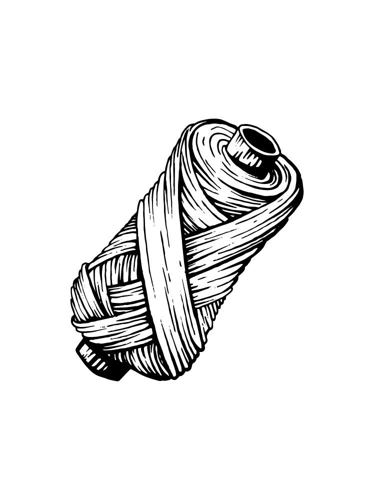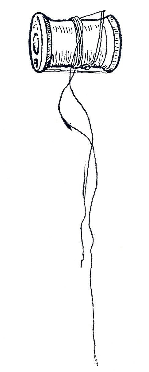 ![Катушка ниток черно белая]()