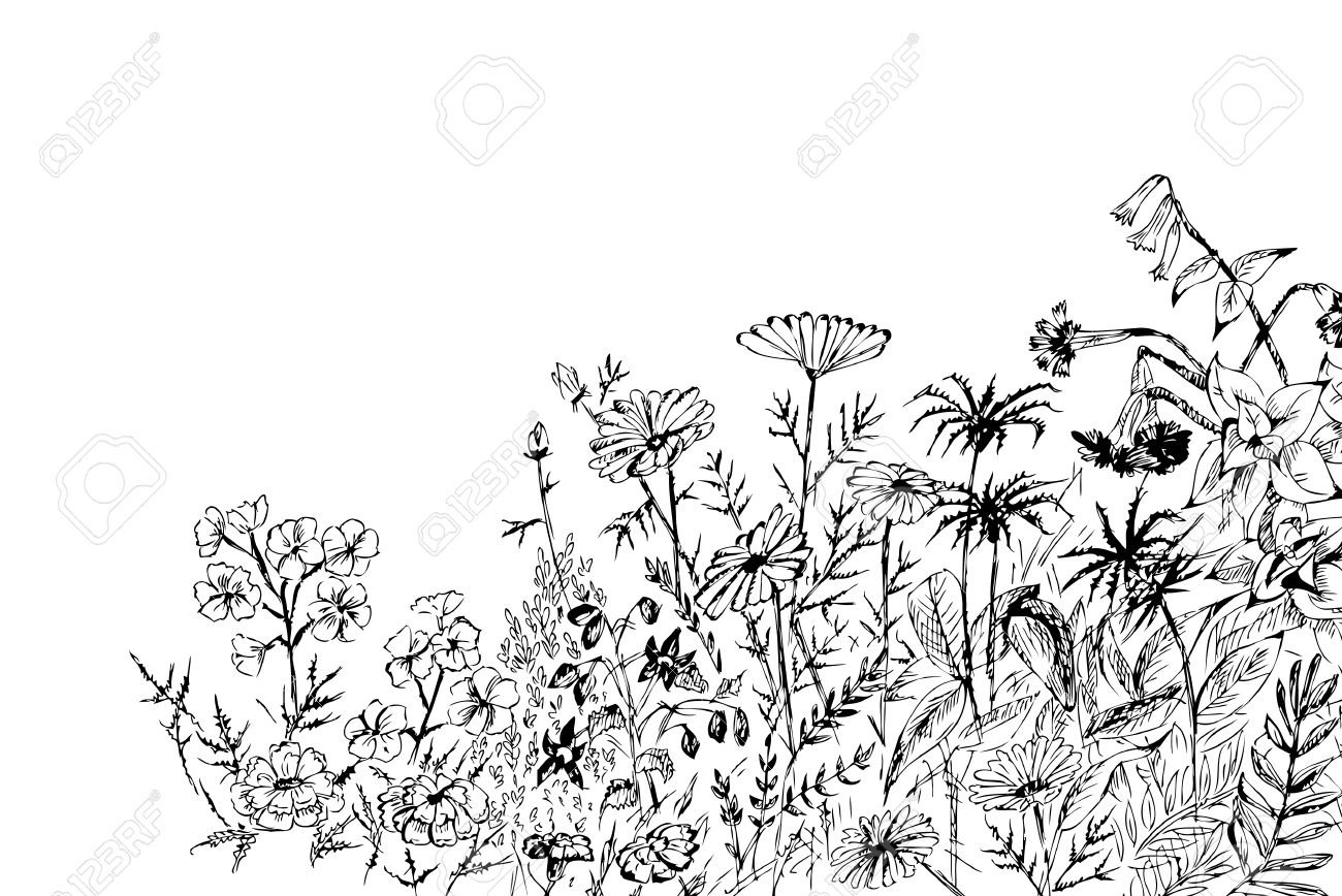![Зарисовка полевых цветов и трав]()