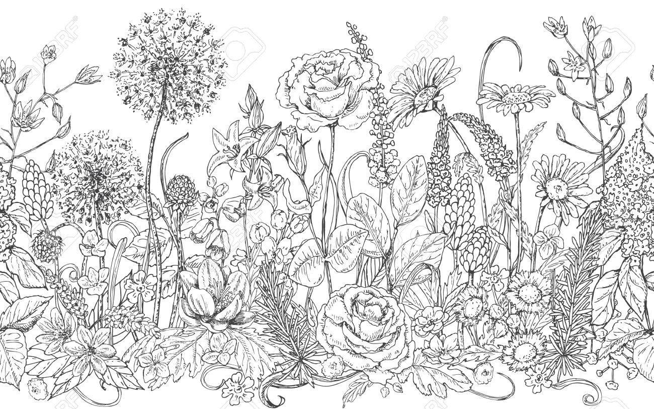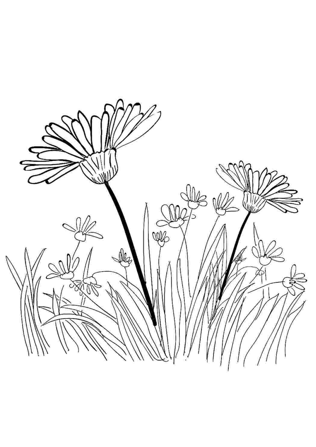 ![Полевые цветы контурный рисунок]()