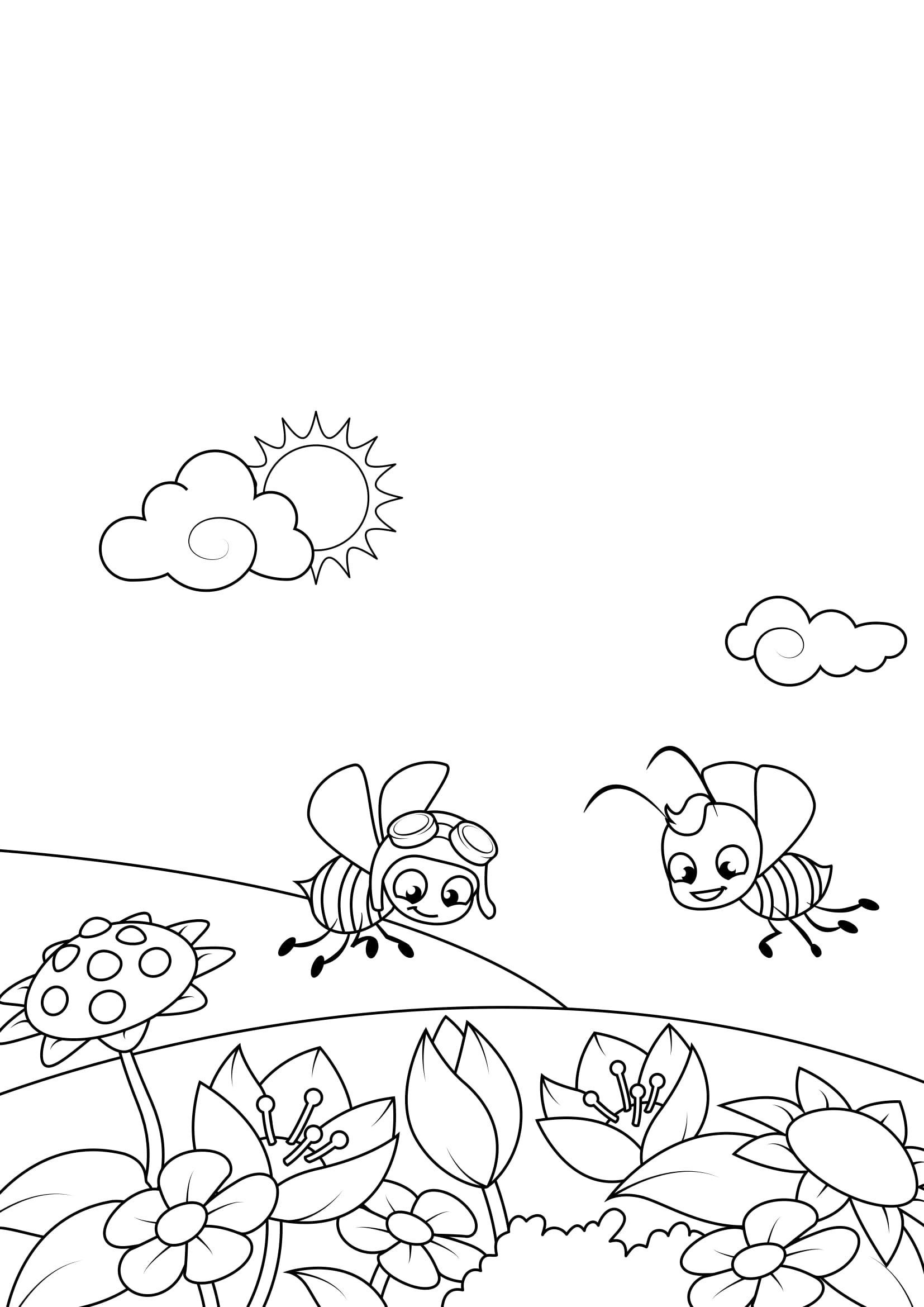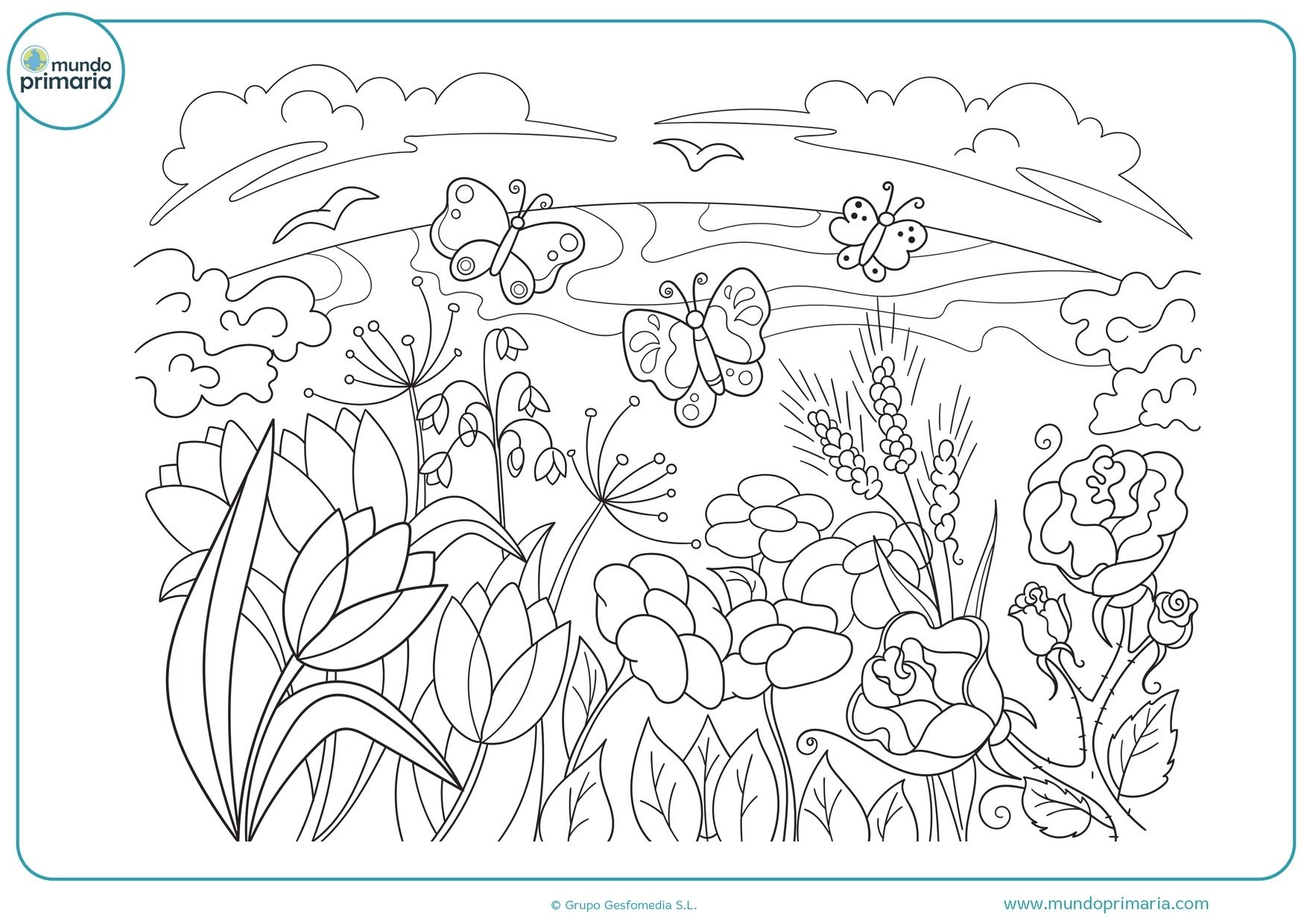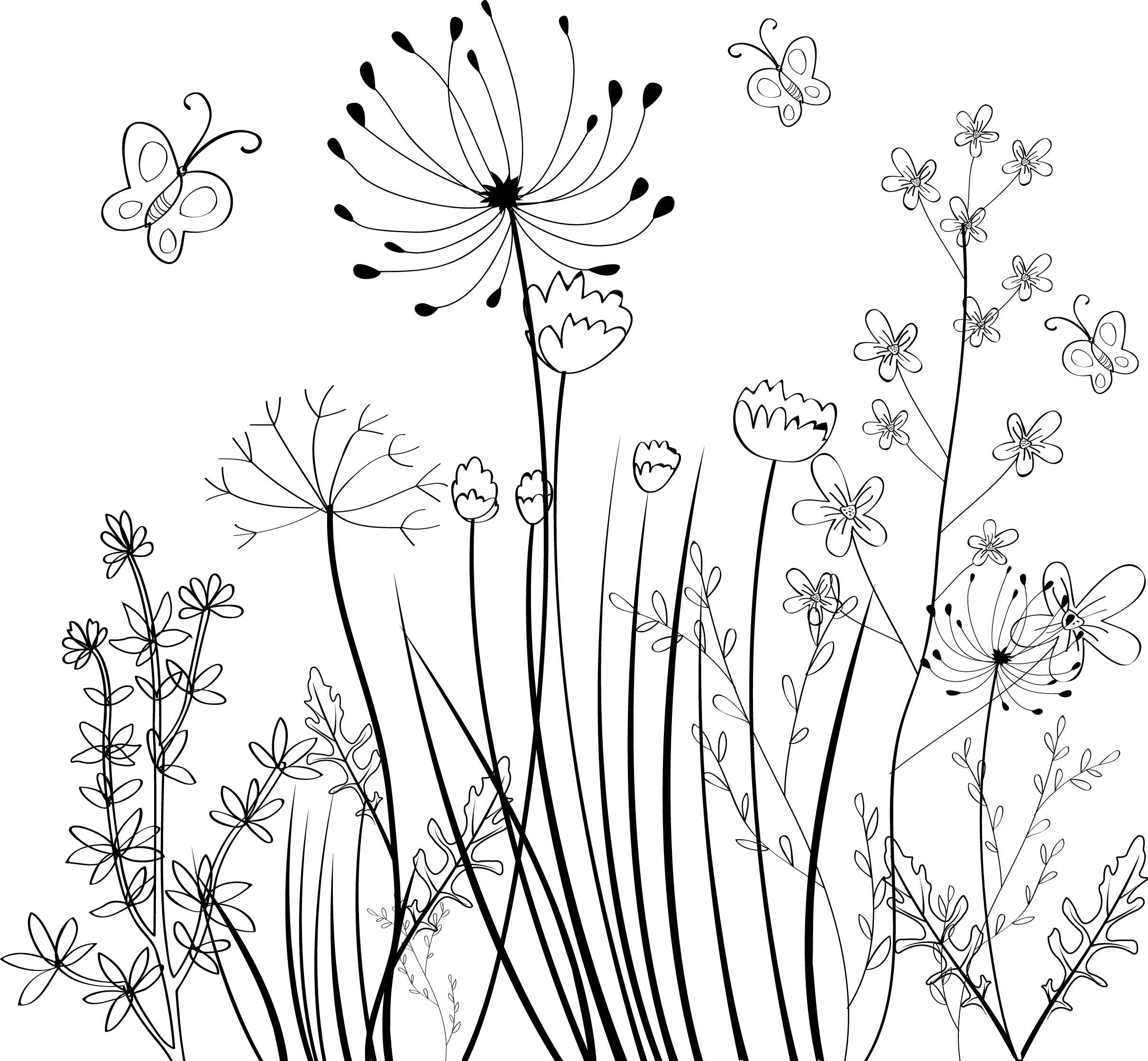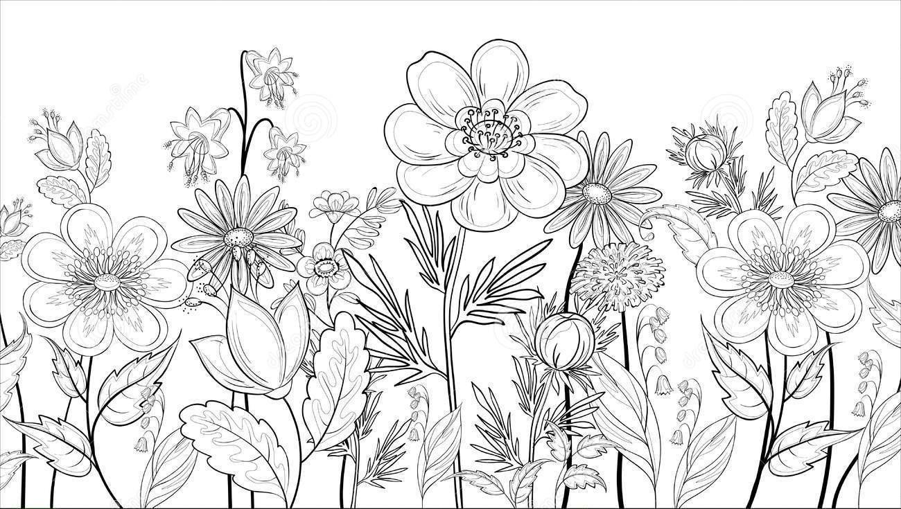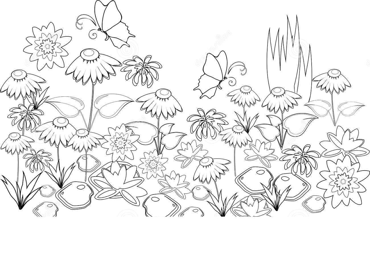 Луг с цветами для раскрашивания