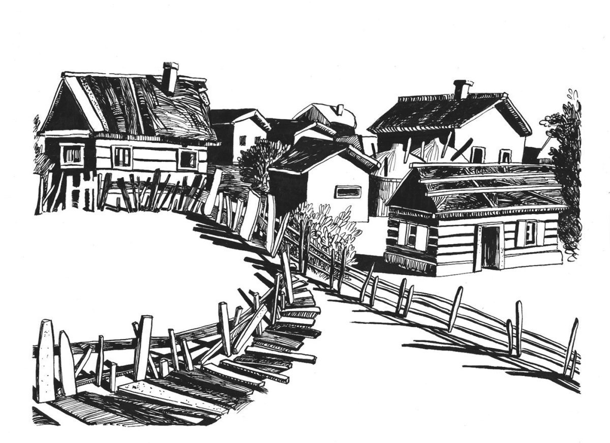 ![Деревня карандашом]()