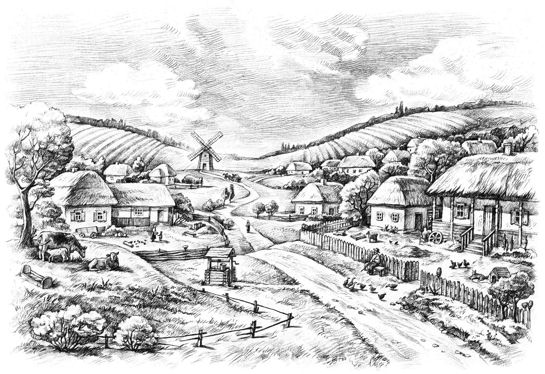 Деревня рисунок