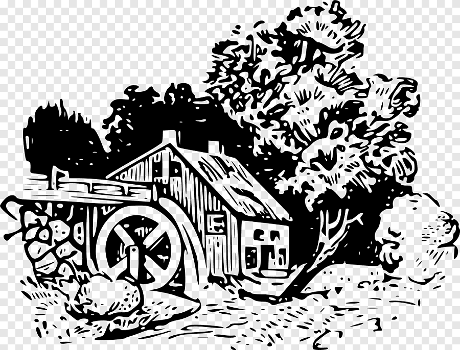 ![Водяная мельница силуэт]()