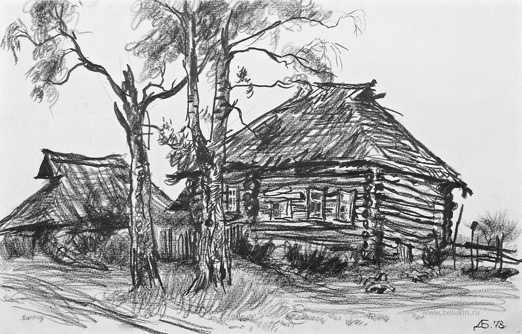 ![Деревенский домик карандашом]()