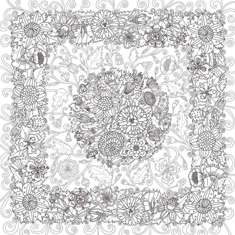 ![Орнамент в квадрате раскраска]()