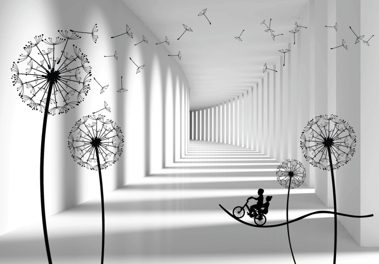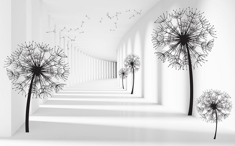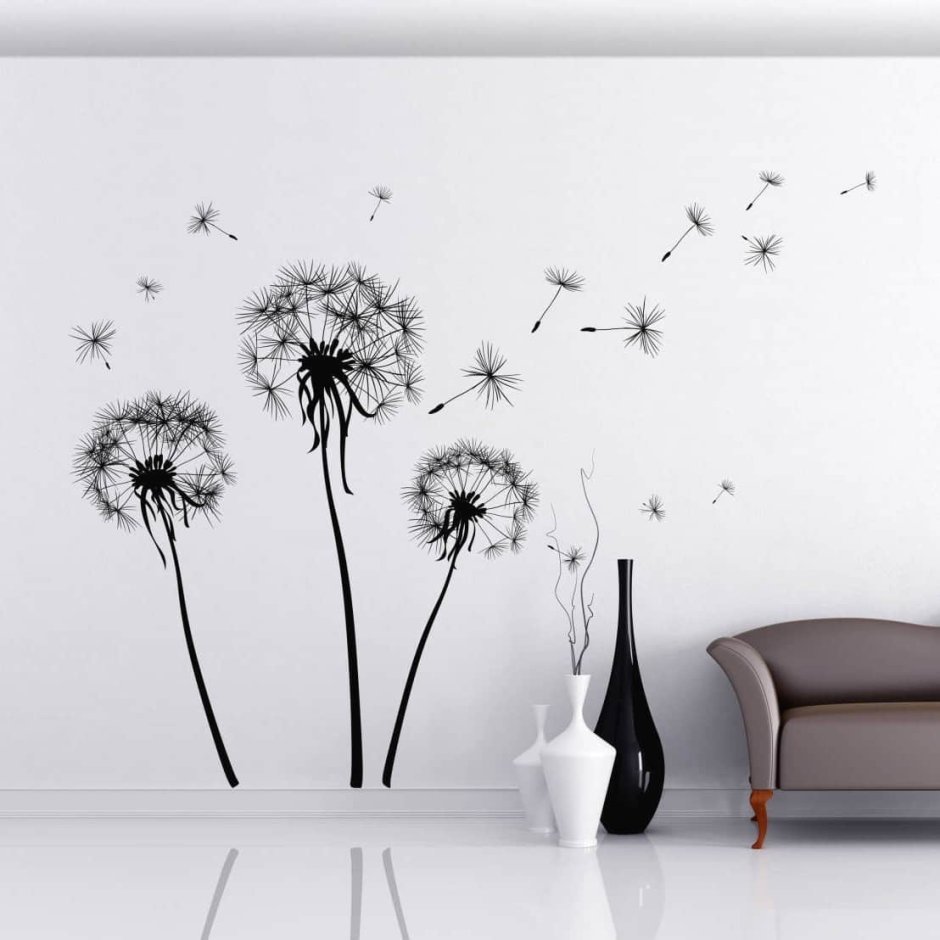 Одуванчики на стене в интерьере