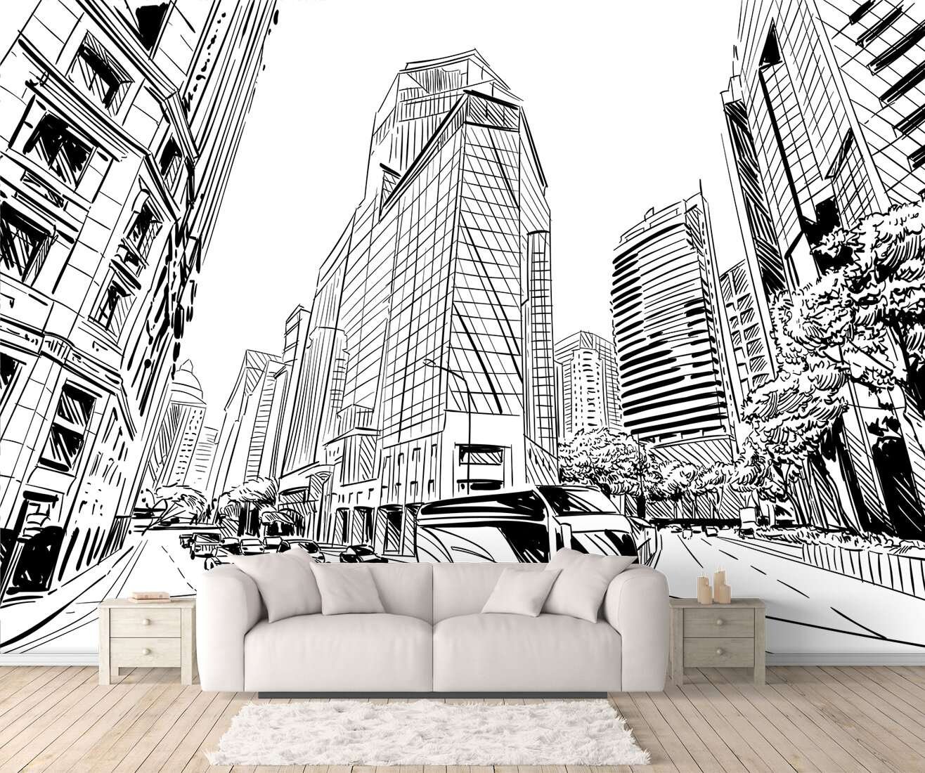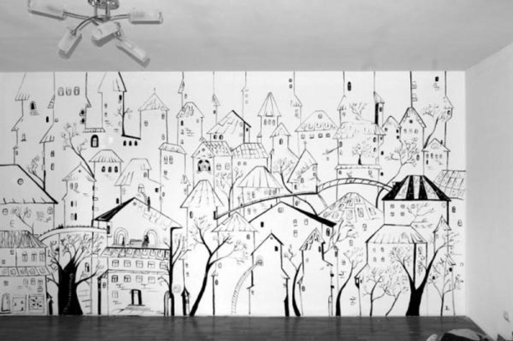 ![Эскиз города на стену]()