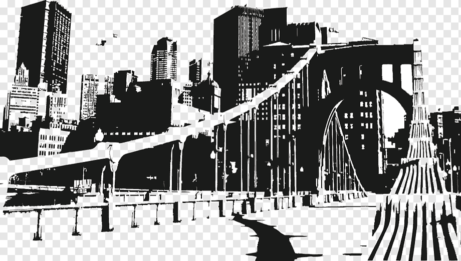 ![Город рисунок черно белый]()