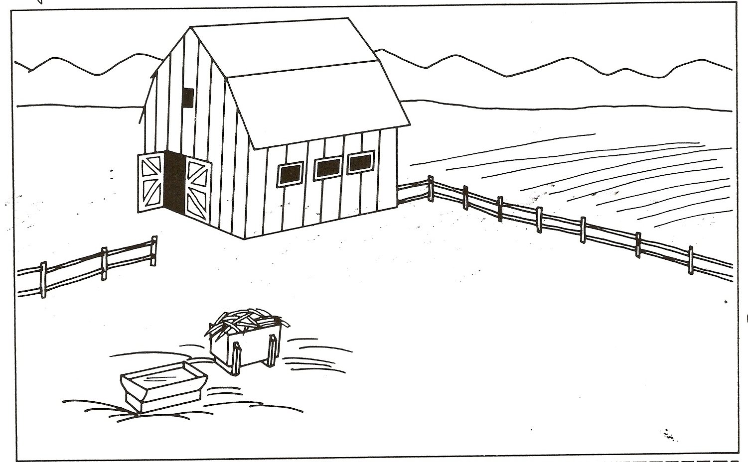 ![Раскраска ферма без животных]()