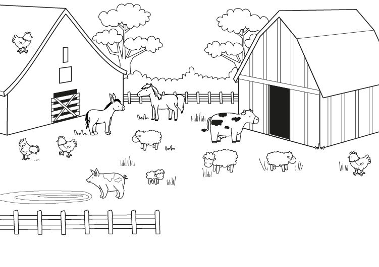 Раскраска ферма с домашними животными