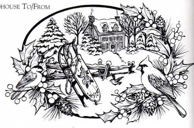 ![Новогодний пейзаж раскраска]()