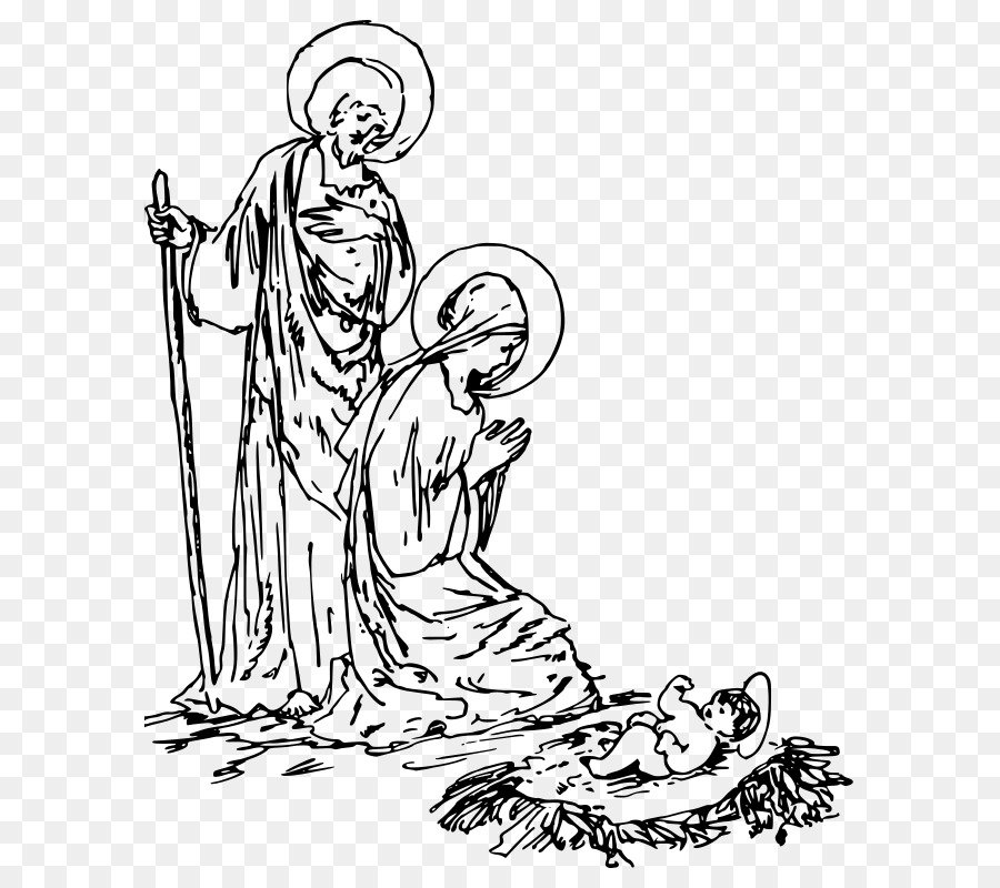 ![Иосиф и Мария в вертепе раскраска]()