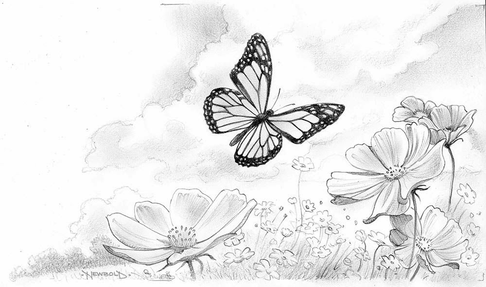 Бабочка рисунок карандашом