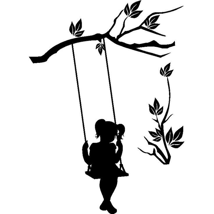 Девушка на качелях силуэт