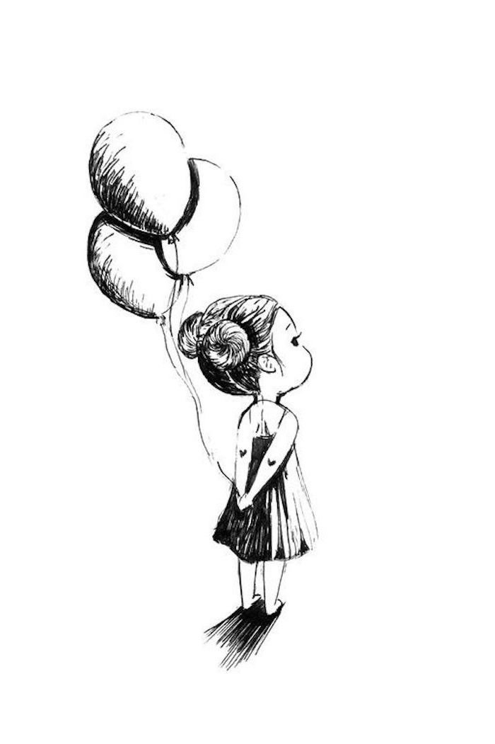 Девочка с шариками рисунок карандашом