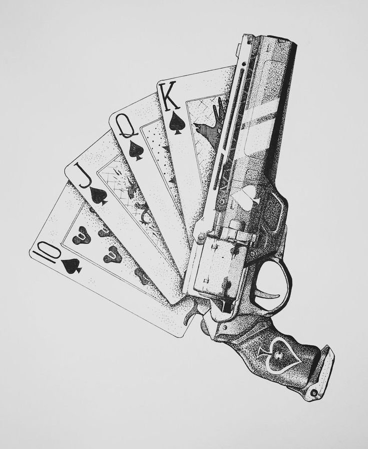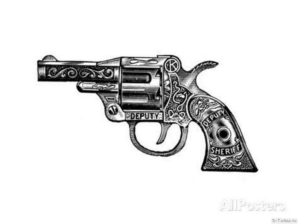 ![Револьвер тату эскиз]()