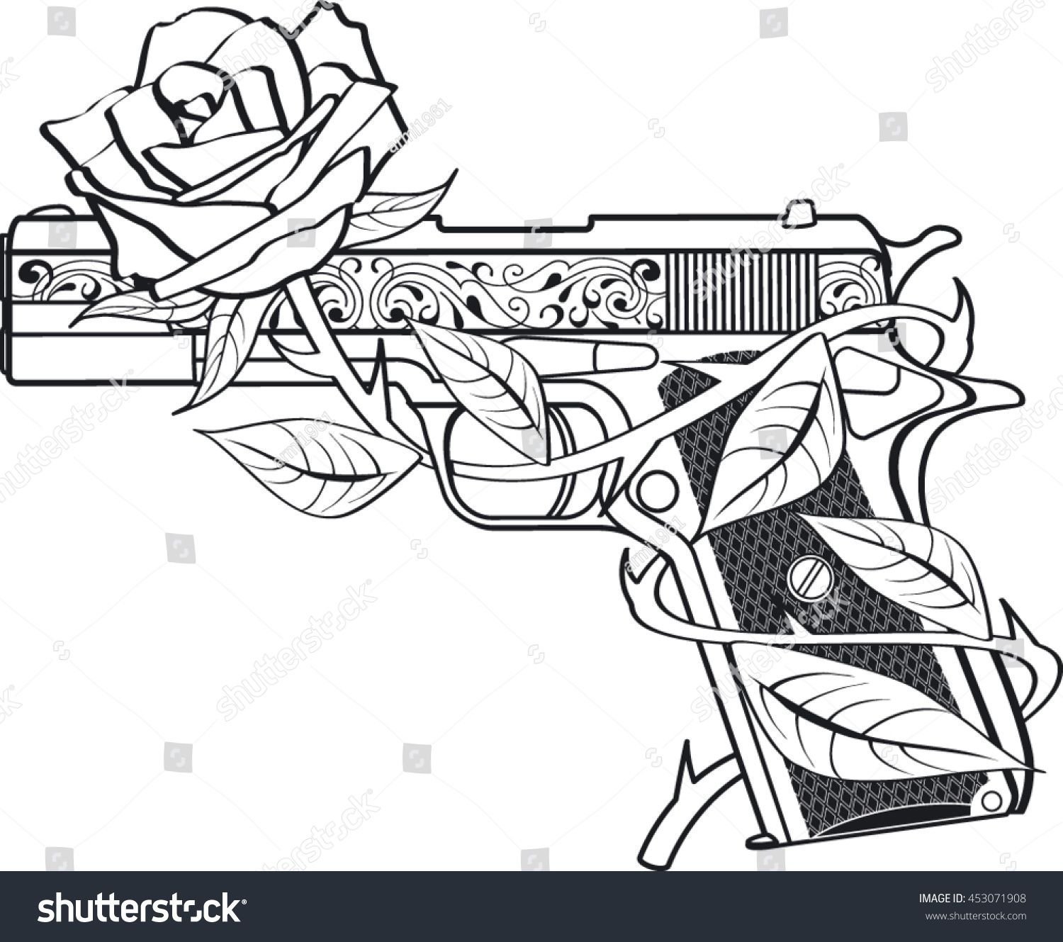![Тату пистолет эскиз]()