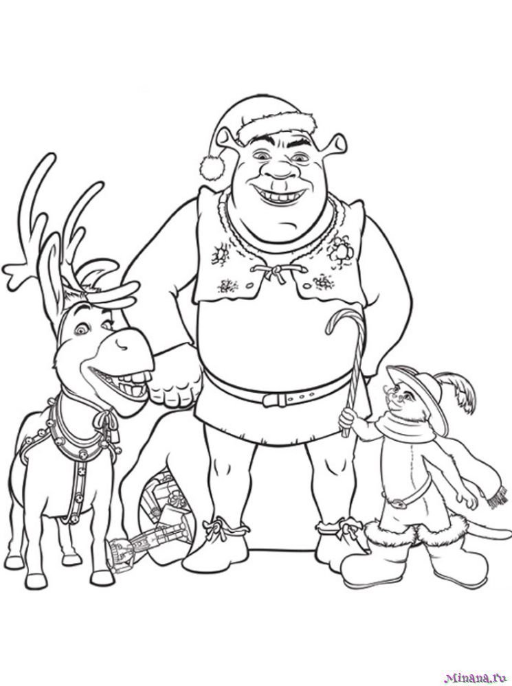 Новогодний Шрек раскраска
