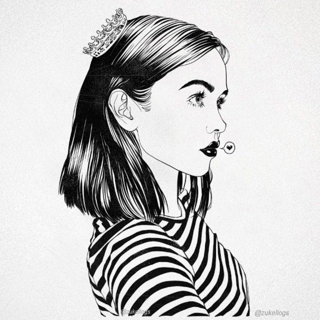 ![Черно белые рисунки девушек]()