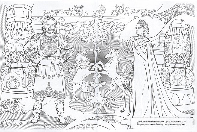 ![Раскраска Добрыня Никитич и Илья Муромец]()