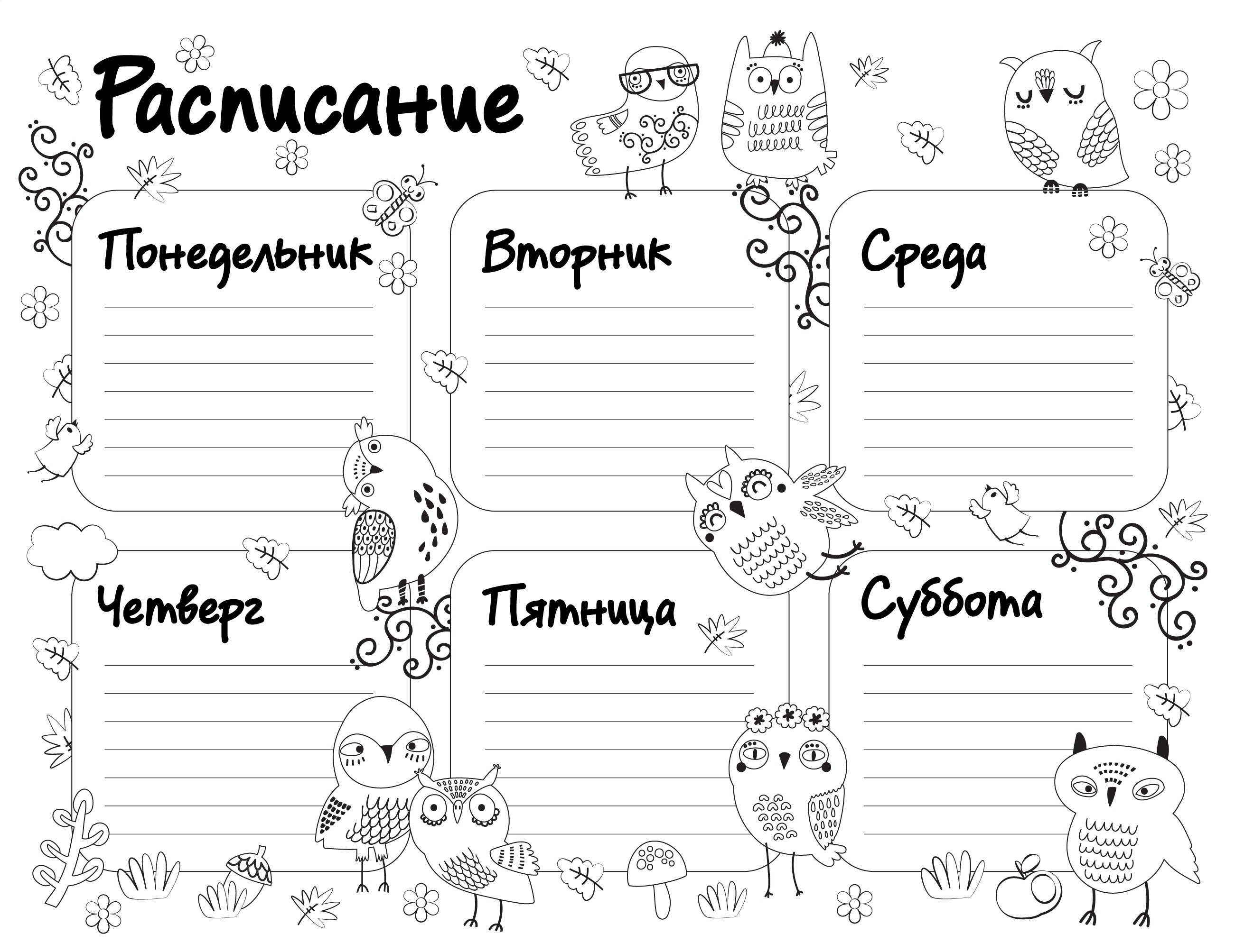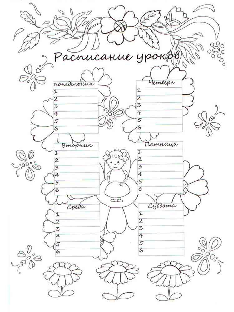 Расписание уроков раскраска для девочек