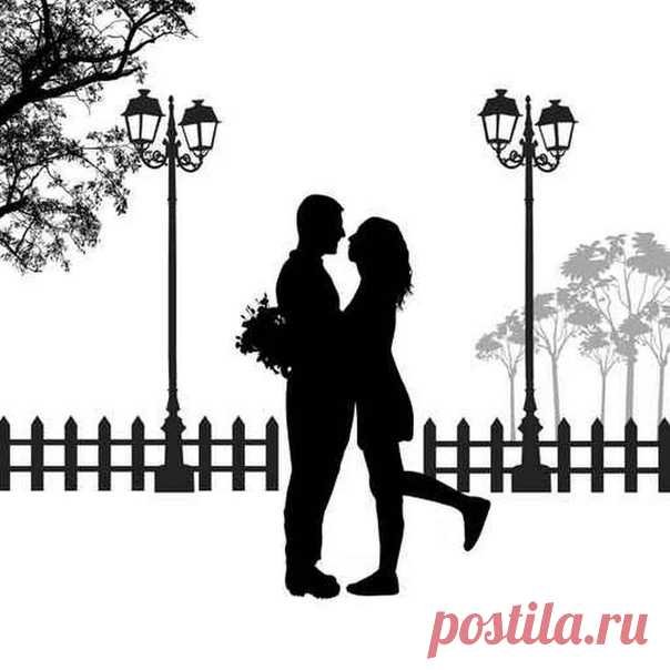 ![Силуэты влюбленных людей]()