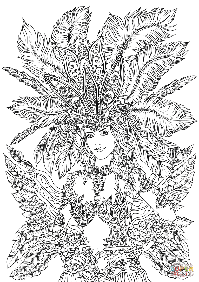 Раскраска бразильский карнавальный костюм