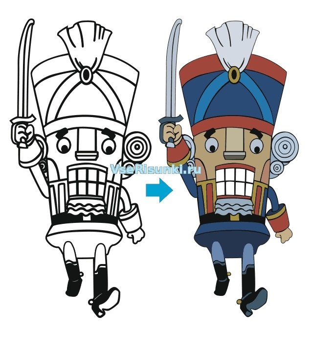 ![Раскраска Щелкунчика из сказки Щелкунчик и мышиный Король]()