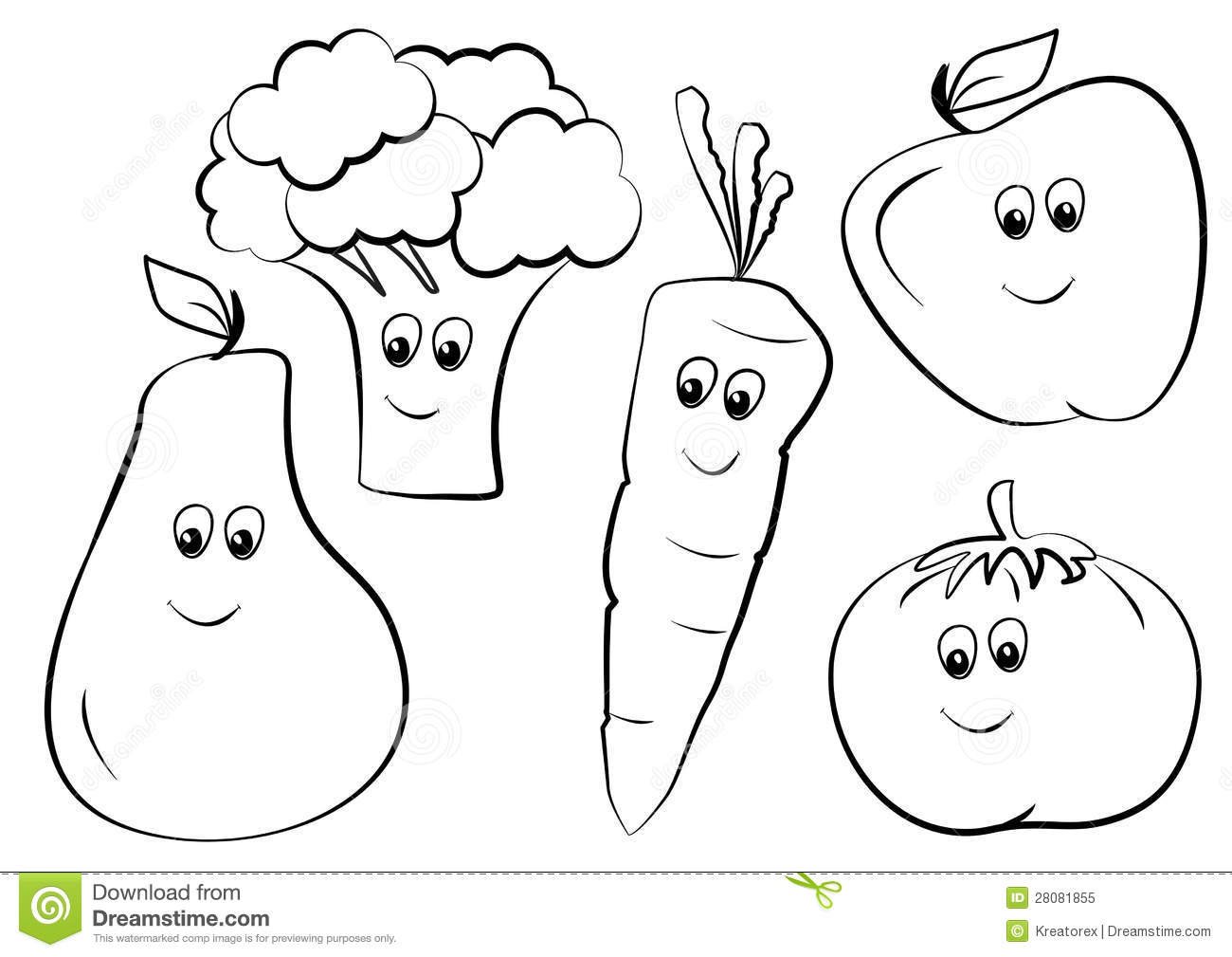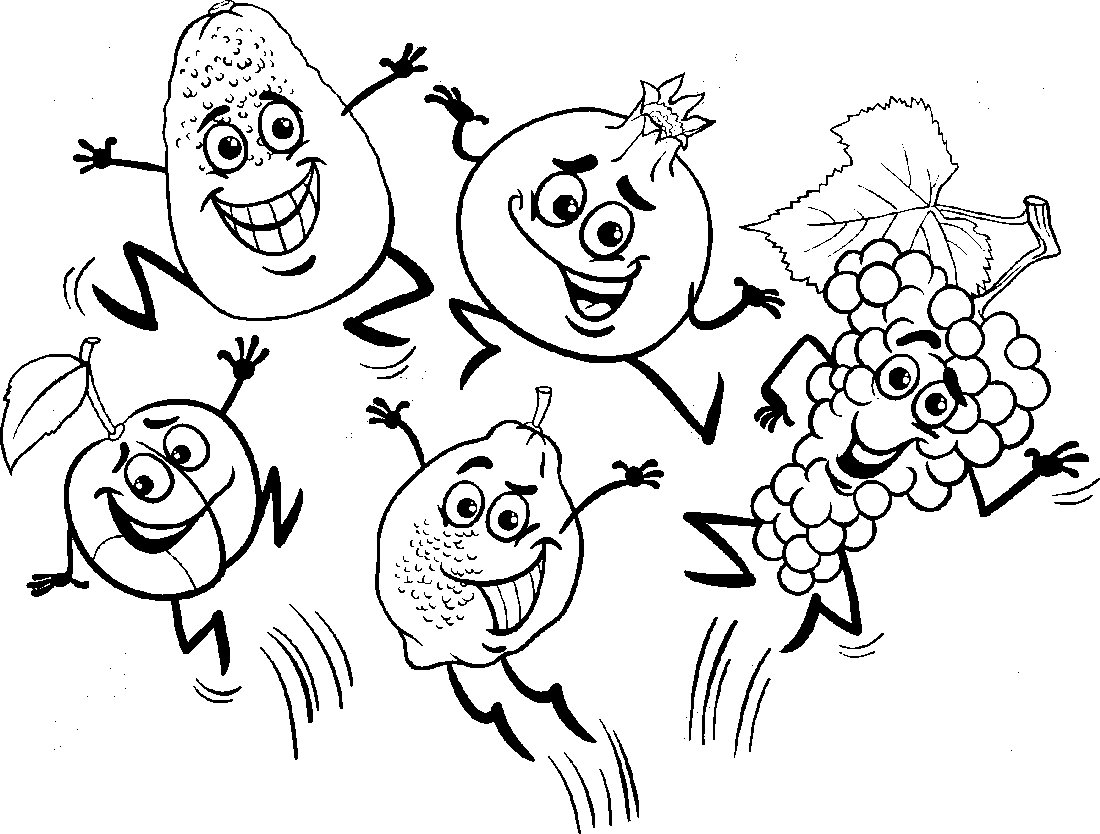Раскраска Веселые овощи и фрукты