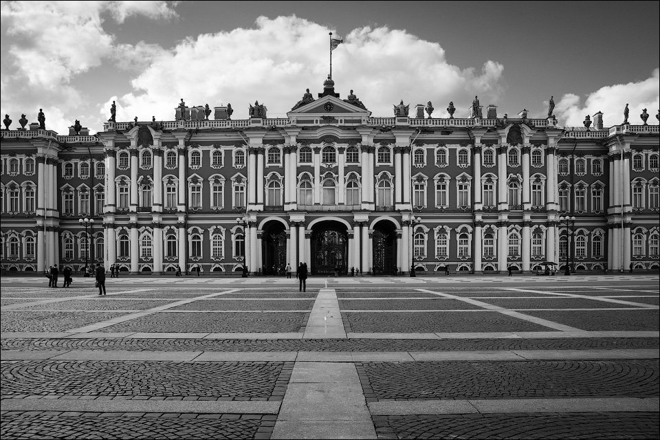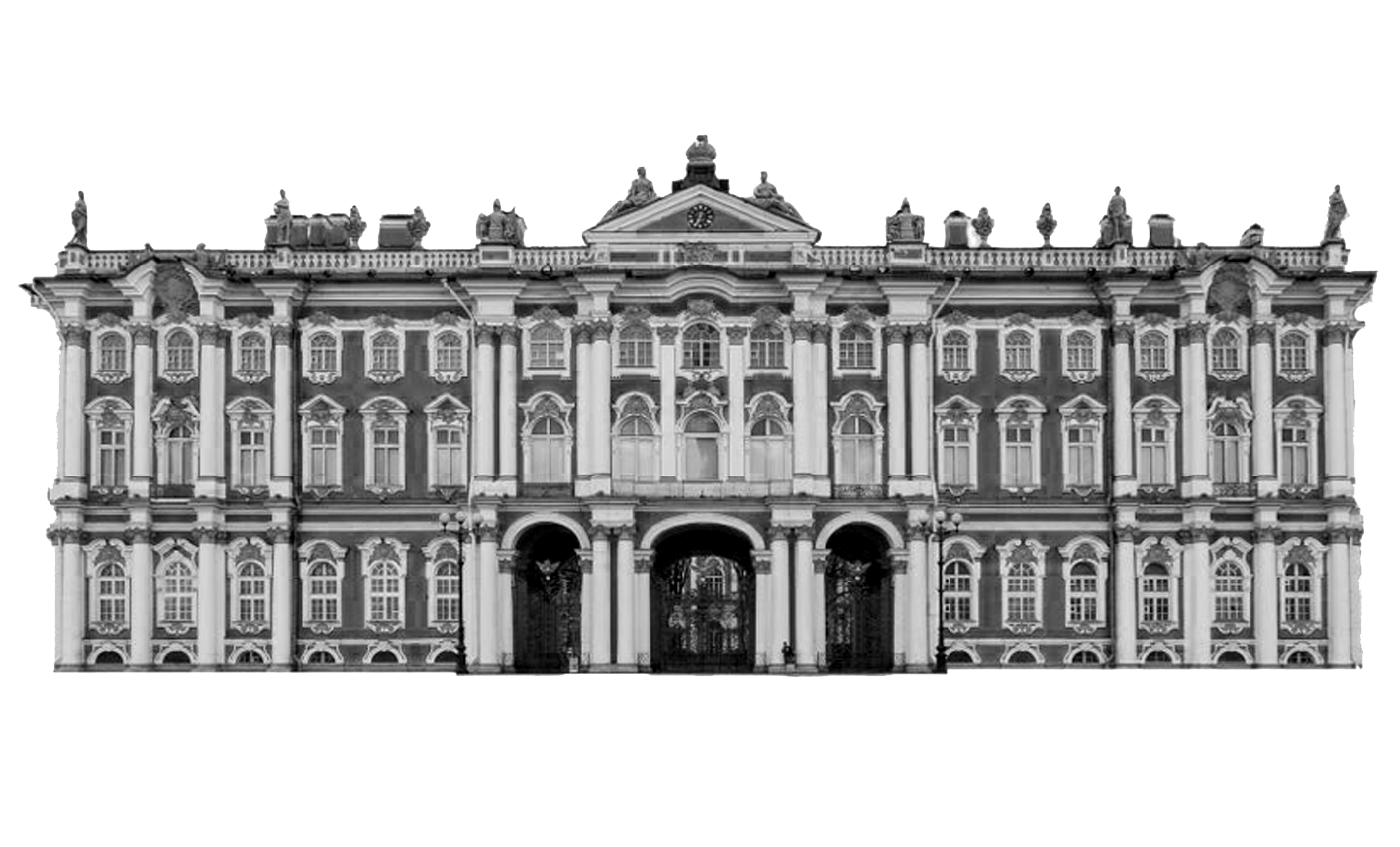 ![Здание Михайловского дворца в Санкт-Петербурге черно белый]()